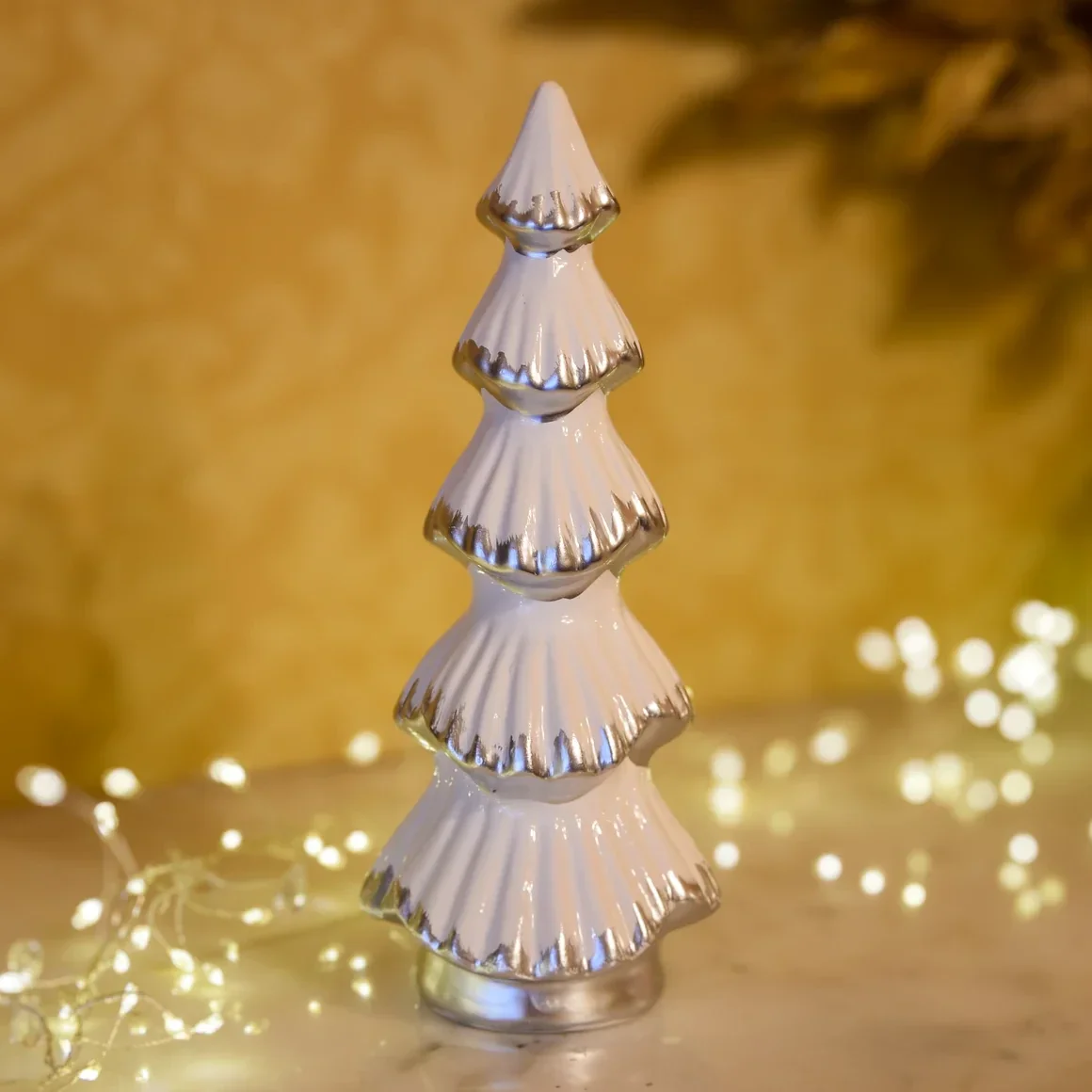 Bring timeless elegance to your holiday décor with this Classic White and Silver Ceramic Christmas Tree. Crafted in a traditional design, this stunning piece features a soft white finish adorned with shimmering silver accents, creating a perfect blend of classic charm and modern sophistication. The smooth, glossy ceramic surface catches the light, adding a touch of warmth and luxury to any room.